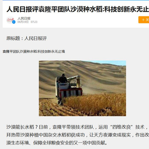 今年,“杂交水稻之父”——袁隆平又干了件大事,用海水稻种子资源成功在沙漠种植出了稻米,解决了十几亿亩的荒漠和粮食问题!