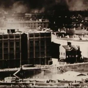 日军沿着苏州河一边纵火一边搜索前进