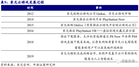 索尼2010年开始布局云游戏。索尼是大型跨国综合企业,主营电子产品,经营领域涵盖消费电子产品、专业性电子产品、电子游戏、娱乐与金融。索尼早在2010年即看到云科技在游戏领域的广阔前景,开始布局云游戏。