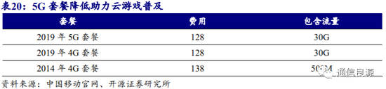 5G流量费用加快云游戏普及。2019年5G发展初期流量单价与4G成熟期单价持平,随着5G建设的发展和商用程度的成熟,流量费用会进一步降低,电信运营商将推岀更贴合云游戏用需求的套餐资费方案,云游戏较高的画质、渲染需求等特点大幅度提升了流量消耗,将降低游戏用户游玩成本。