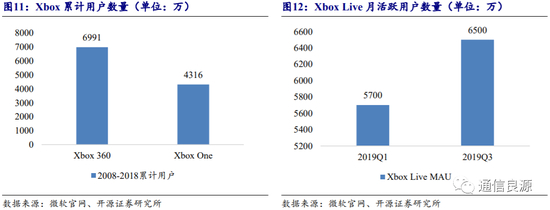作为全球三大主机游戏巨头之一,微软拥有庞大的游戏用户基础。截至2018年,Xbox累计用户数达到4316万,2019年Q3月活跃用户达到6500万