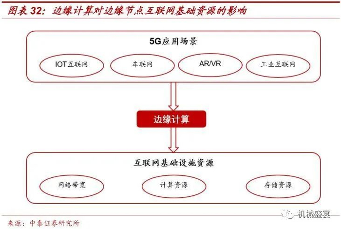 边缘计算助力,数据中心将成两线增长模式。云计算时代推动数据中心向大型化、集约化发展。随着5G及物联网时代“云+端”的产业模式向“云边端”产业模式发展,数据中心也将呈两条线发展:一条是以云架构定义的超大规模数据中心,一条则是边缘云数据中心。在边缘计算的推动下,边缘节点的互联网基础设施资源(网络带宽、计算资源、存储资源)的需求均有望得到提升,中小型IDC专业服务商有望迎来发展良机。