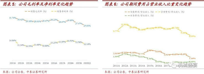 公司盈利能力相对稳定,控费力度显著。2019年,公司整体毛利率水平为27.47%,同比下降2.38pct,分业务看,专用设备毛利率为27.20%,同比下降0.42pct,IDC业务毛利率为27.88%,同比下降10.34pct,IDC业务毛利率下滑导致公司整体盈利能力出现一定程度下降,但总体上保持相对稳定。我们认为,随着公司子公司唯一网络持续拓展大客户业务,毛利率出现一定程度下滑属于正常现象,随着规模增长未来有望企稳回升。此外,期间费用方面,2019年,公司管理费用率为9.29%(包含研发费用),同比下滑1.5pct,销售费用率稳定,整体费用率呈下滑趋势,表明公司成本管控能力提升。