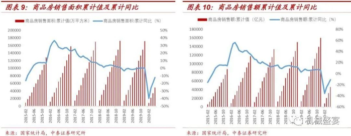 5) 2020年,受疫情影响,房地产市场短期下滑。2-5月商品房销售面积4.87万平方米,同比减少12.30%,销售额4.62万亿元,同比减少10.60%。2020年2月,央行在金融市场工作电视电话会议中明确指出,落实好房地产长效管理机制,保持房地产金融政策的连续性、一致性和稳定性;5月两会政府工作报告指出,发挥中心城市和城市群综合带动作用,培育产业、增加就业。坚持房子是用来住的、不是用来炒的定位,因城施策,促进房地产市场平稳健康发展。
