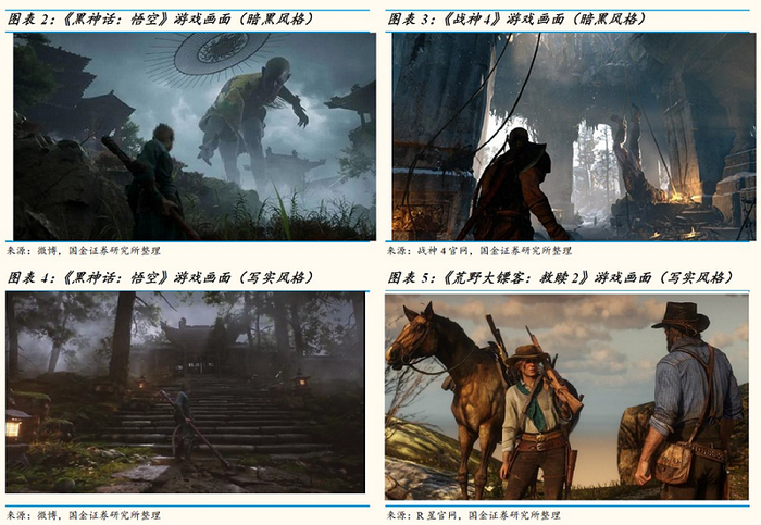 国金证券研究认为,尽管制作团队不强调这是款3A游戏,但就演示效果来看,“黑悟空”的演示效果远超玩家对国产游戏的一般认知,游戏水平以3A游戏为目标来进行研发,采用虚幻4引擎,游戏场景制作精良,3D建模细致,画面不论是对标国外同属暗黑风格的3A游戏《战神4》,还是写实风格的3A游戏《荒野大镖客:救赎2》都毫不逊色。