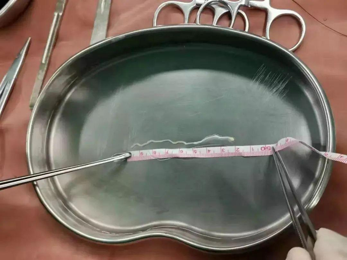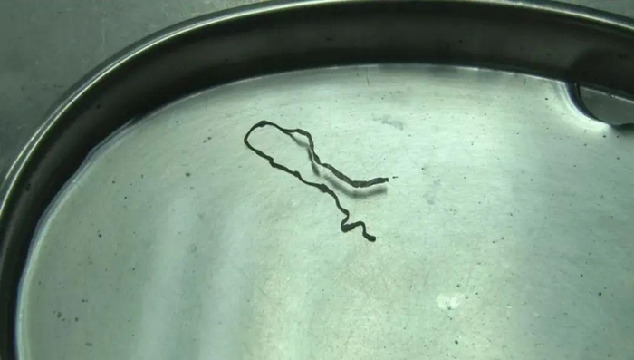 另一病例中被取出的裂头蚴虫体