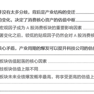 (1)在全球宏观因子出现显著变化之前,A股的消费核心资产仍然是合意的底仓品种,估值具备持续维持高位的条件。