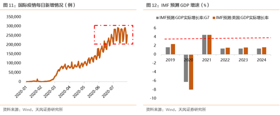 在疫情对全球经济冲击持续的情况下,未来1-2年零利率和低增长是大的宏观背景,全球资金继续维持较低的机会成本和较低的资产回报率目标,外资持续流入的过程也就意味着更低的低贴因子和更高的消费核心公司估值上限。从新冠疫情全球新增确诊病例数来看,尽管单日新增已经不在继续上升,但在近一个月仍然维持在20万例/日左右,这也进一步印证了疫情冲击可能在未来将会常态化。根据IMF预测,在低基数影响消退后,2022年美国GDP增速将会降至1.56%,而直到2024年都将远远低于2019年的GDP增速。而考虑到疫情冲击的持续性,未来这一数值可能进一步下调。