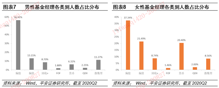 从基金类型看,偏股型基金经理主要以普通股票型、偏股混合型、灵活配置型和平衡混合型为主;偏债型基金经理和固收+基金经理的划分可参考报告《【平安证券】基金深度-债券基金系列研究(上):纯债基金业绩归因和优选20200423》;FOF、货币型、QDII和指数型的基金经理都以Wind为主,在其基础上根据业绩比较基准和实际仓位等进一步优化。