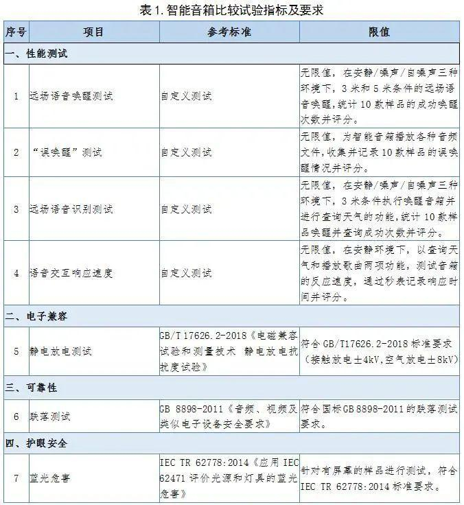 性能(远场语音唤醒、误唤醒、远场语音识别以及语音交互响应速度)、电磁兼容(静电放电抗扰度测试)、可靠性(脱落测试)、护眼安全(蓝光危害测试)
