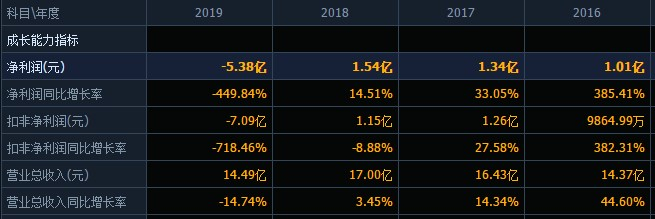 值得一提的是,公司在2019年巨亏5.38亿。数据显示,公司去年实现营收14.49亿,同比下降14.74%,净利润亏损5.38亿,同比下降449.84%。