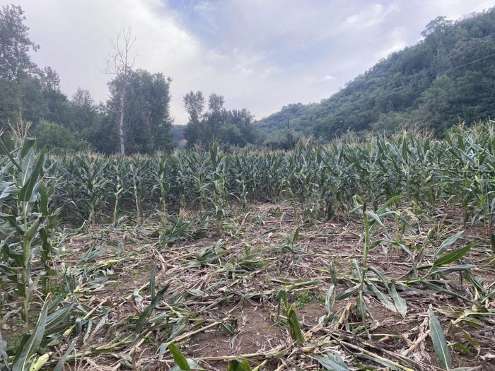 7月末以来,地里的玉米结了穗,逐渐成熟。郭振福没有喜悦,他望向玉米地后面枝叶茂密的山林,点上一根烟,眉头紧皱,“这块地基本被野猪祸害完了”。
