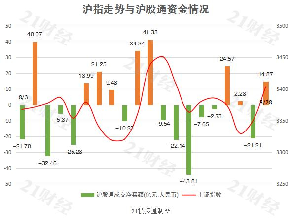 北向资金一反前两个交易日净卖出的态势,今日大幅净买入64.43亿元,创7月30日以来单日新高。