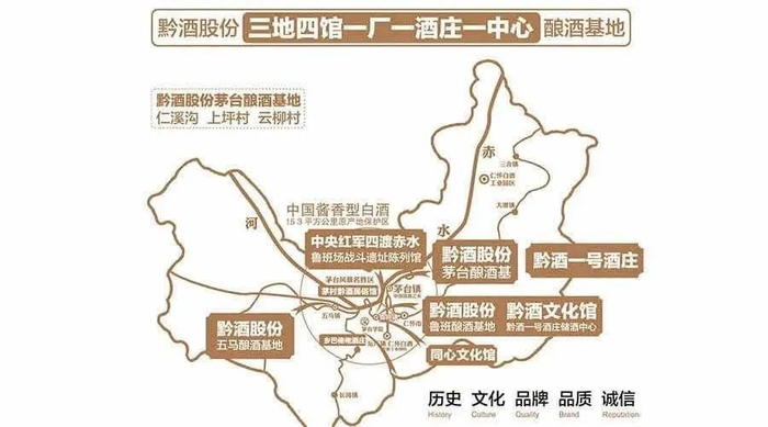 在文化上,因地制宜,提出“三地四馆一厂一酒庄一中心生态酱香白酒企业(酒庄)”发展战略定位,(所谓:“三地”是指“黔酒股份”位于茅台镇、鲁班镇、五马镇三大酿造和生产基地;“四馆”,即“黔酒文化馆”、“红军四渡赤水鲁班场战斗遗址陈列馆”、“茅村黔酒民俗馆”和“同心文化馆”;“一厂”,即“黔酒酿酒总部”,以白酒酿造为核心;“一酒庄”,指“黔酒一号酒庄”;“一中心”,即“黔酒股份黔酒大师酒体设计中心”)。开发“酒+文化”和“酒+旅游”等文化新营销,在彰显黔酒文化底蕴的同时,逐步实现黔酒股份从区域品牌到全国性品牌的转变。