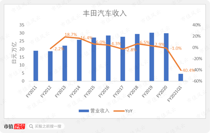 丰田汽车在5月12号的业绩发布会上给出了非常悲观的预期:预计2021财年(注:丰田的财年截止于当年的3月底)收入将同比下滑20%,营业利润将同比减少80%。