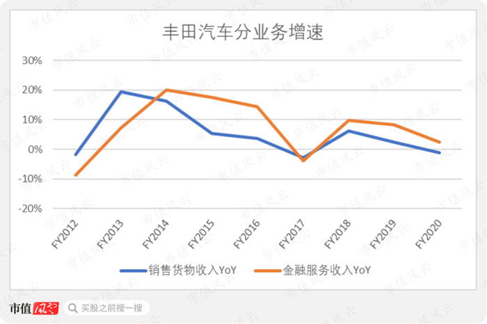 2020财年当中,销售货物(除了汽车还有零部件)收入占比92.7%,金融服务仅占7.3%。