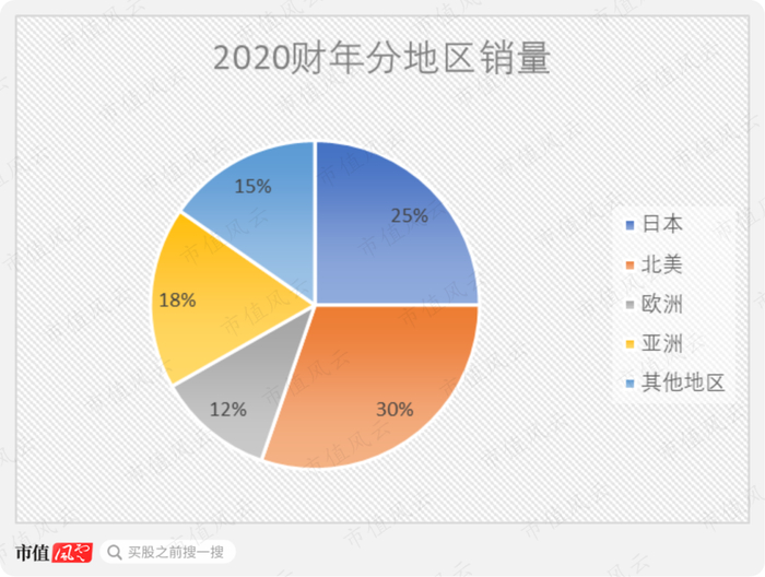 2020财年,丰田25%的销量来自日本,30%来自北美,欧洲、亚洲分别占12%、18%,其他地区贡献了15%,在地域上相当分散,是真正的国际化企业。
