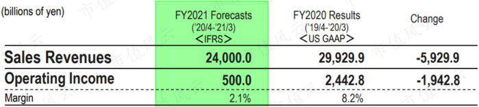 最近的2021财年一季度,受疫情影响收入同比大幅减少了40.4%。