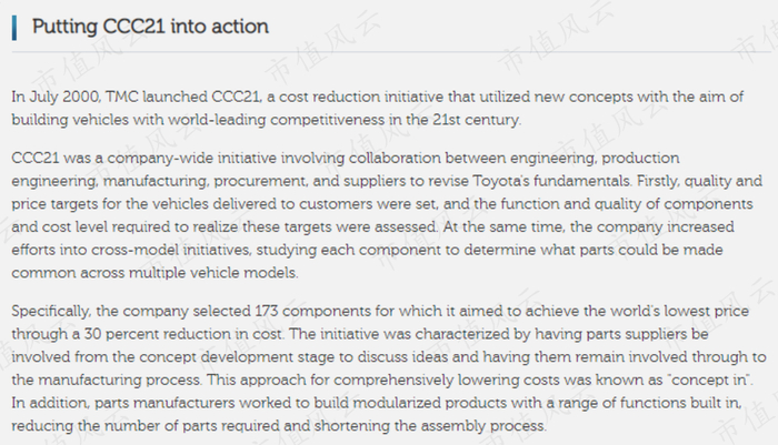 2000年,丰田提出了一项削减成本计划,简称CCC21计划。