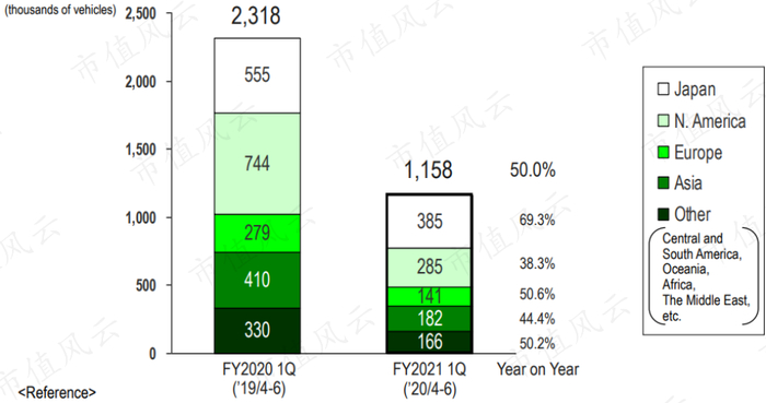 2020财年一季度(注:截至6月30日的季度),丰田的销量暴跌50%至115.8万辆。