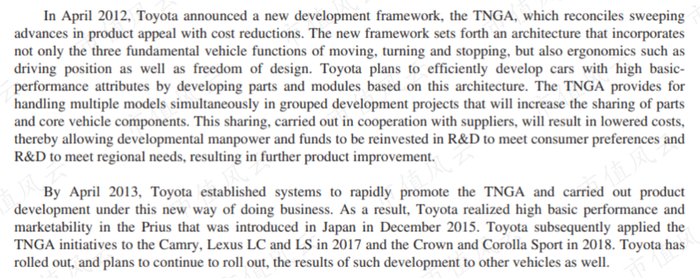 在2012年,公司又宣布了丰田新全球架构(Toyota New Global Architecture,简称TNGA)。