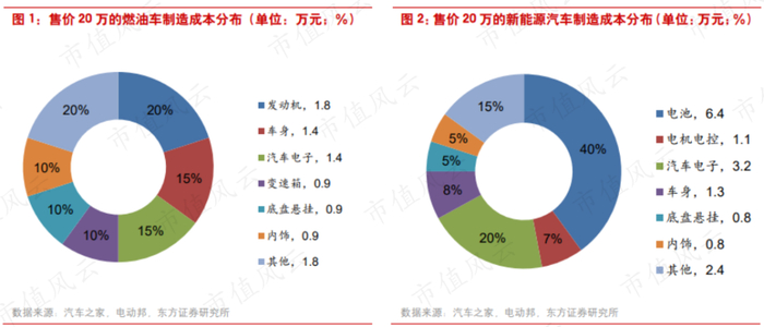 同样售价的燃油车中,发动机占制造成本的20%,比例最大。