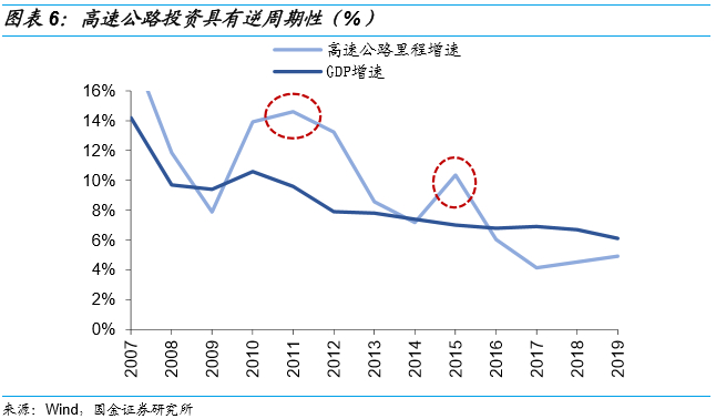 我国高速公路建设投资具有明显的逆周期性,预计随着2020年专项债的放量,后续高速公路会有一波新的增长小高峰。2008年和2012年两轮经济下滑期间,政府大力发展基建对经济进行兜底。作为传统基础设施之一的道路运输,亦借政策东风得到在2011年、2015年快速增长。2019年以来基建增速低迷,尤其是2020年一季度,受疫情影响,2、3月份基建增速跌至-26.86%、-16.36%。政府为了应对经济下行压力,积极引导专项债投入基建领域,预计未来几年,高速公路将会出现增长小高峰。