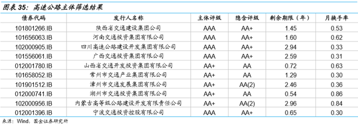 在这部分中,我们选取相对收益率较高,期限适中,且成交较活跃的高速公路发债主体进行分析,筛选标准如下: