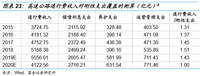 由于受疫情影响,2020年2月17日-2020年5月6日,高速公路行业免费通行,这将对行业收入产生较大影响。我们对高速公路通行费收入对刚性支出的覆盖程度进行了测算:2020年全年通行费收入预计刚好能够覆盖刚性支出,不需要占用自有资金或新增融资,疫情对高速公路行业现金流的影响尚在可控范围内,但行业内不同企业资质或有所分化,疫情对其影响可能较大。