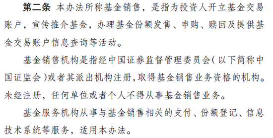 来源:《关于实施〈公开募集证券投资基金销售机构监督管理办法〉的规定》