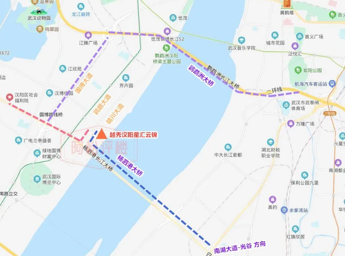 越秀·汉阳星汇云锦以江为轴,周边三桥三道一轨,长江大桥、鹦鹉洲大桥和已通车的杨泗港长江大桥,为自驾出行提供了立体式交通道路,快速通达武汉三镇,晴川大道、鹦鹉大道、国博大道更可便利直达钟家村、归元寺以及汉口核心商圈;6号线步行可至,可与地铁2号线、3号线、4号线、8号线、12号线、16号线(规划)等多条地铁线无缝换乘,畅达武汉三镇。