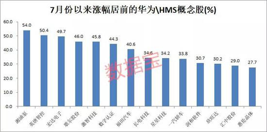 从市场表现来看,7月份以来华为、华为HMS概念股平均涨幅超过7%,大幅跑输同期上涨指数(14.04%),仅有三成个股跑赢大盘,这与近期科技股的大幅回调有一定原因。湘油泵、英唐智控累计涨幅均超过50%,宏达电子、歌尔股份、激智科技涨幅均超过45%。跌幅居前的有和胜股份、共达电声、福日电子等。