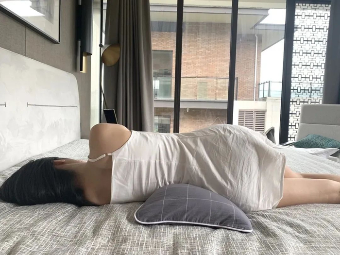 枕在腰下,刚好填满躺下时腰部的空隙,缓解腰部悬空的压力。
