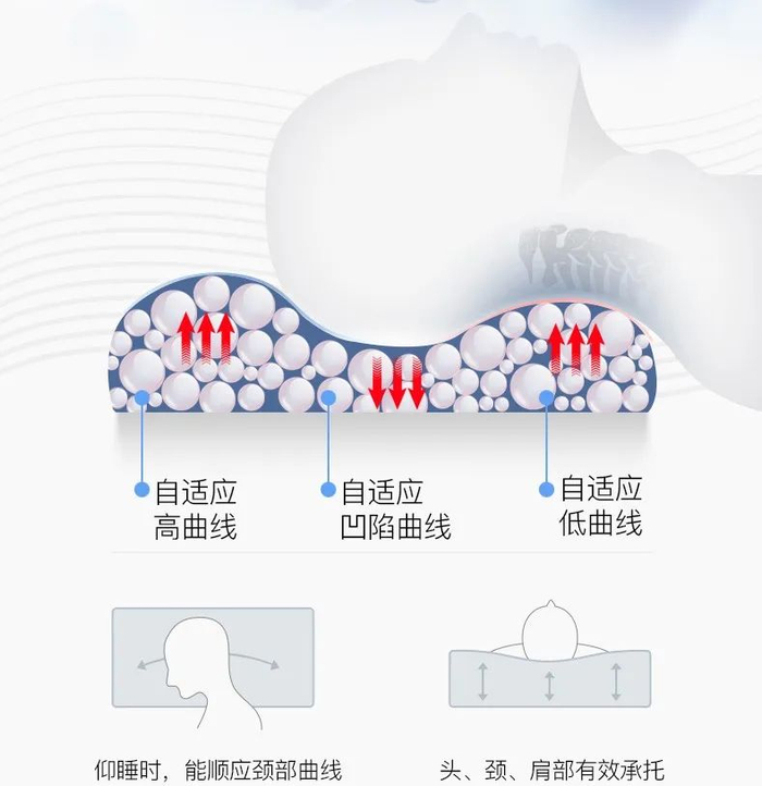无论什么睡姿,它都能紧密贴合承托头颈曲线,缓解颈椎压力。