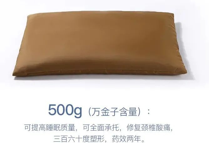 这款枕头有两种规格,万金子含量分别是 50 g与 500 g。