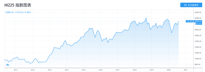从2012-2020年,日经指数整体呈上升趋势(图片来源:tradingview)