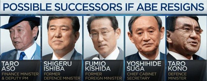 此外,安倍拒绝评论任何一位有可能的接班人,因为他认为自己不具备讨论的资格。而对于继任自民党新总裁的选出方法,安倍称“已交给(自民党的)领导层”。而据日本共同社消息,日本自民党宣称,将以“快车道”方式选出下一任领导人。