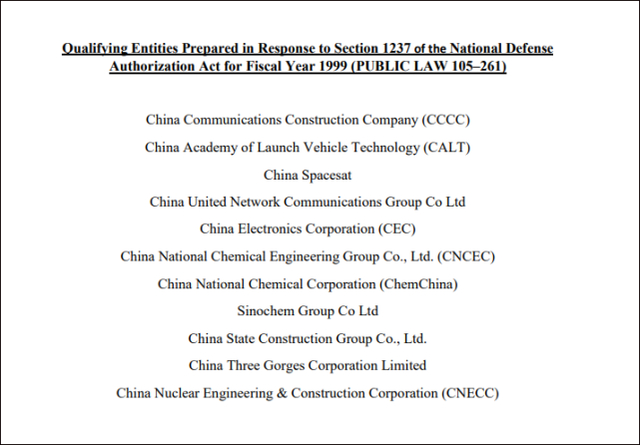 据美国防部网站28日公布的清单,这11家中企分别为: