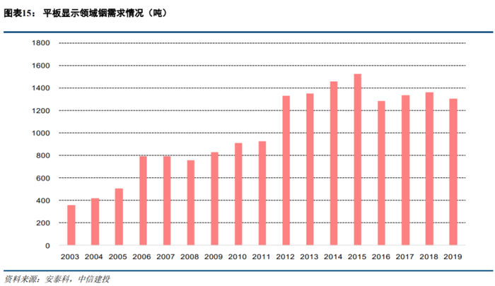 平板显示领域:铟需求将在2021年恢复,年增长率达9.1%