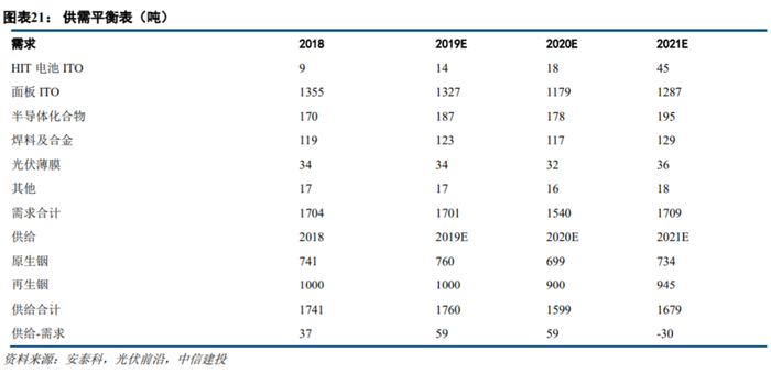 (三)铟的需求:异质结电池需求或将大规模提高总需求量