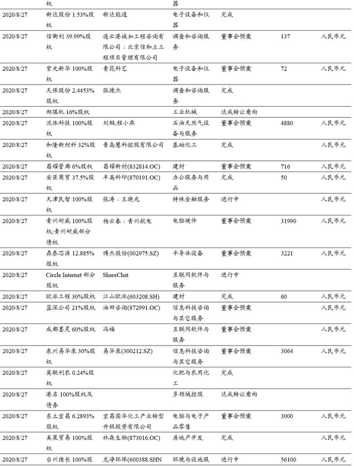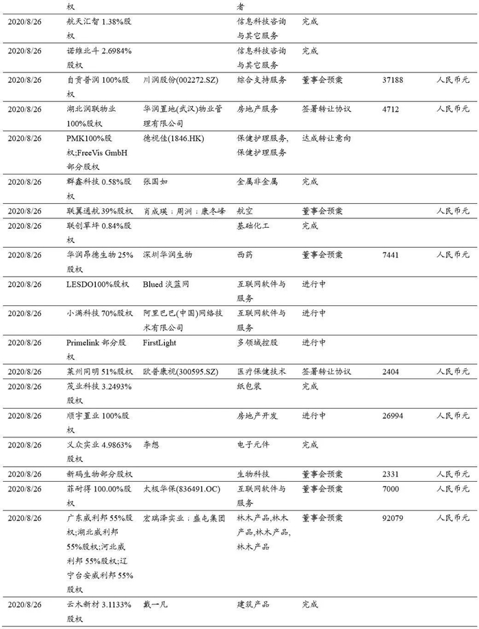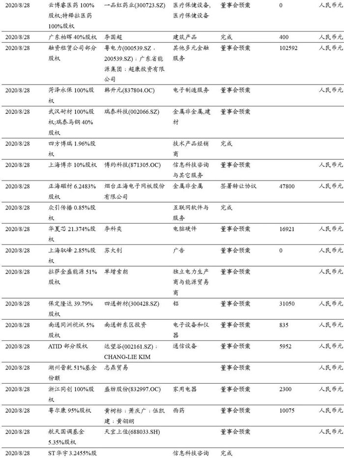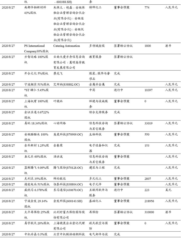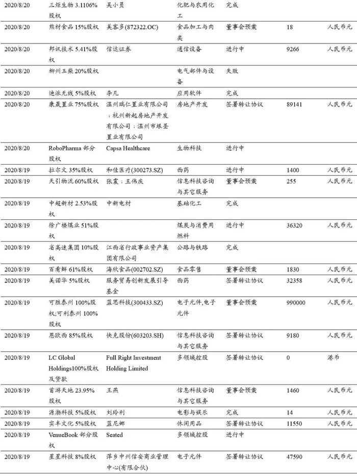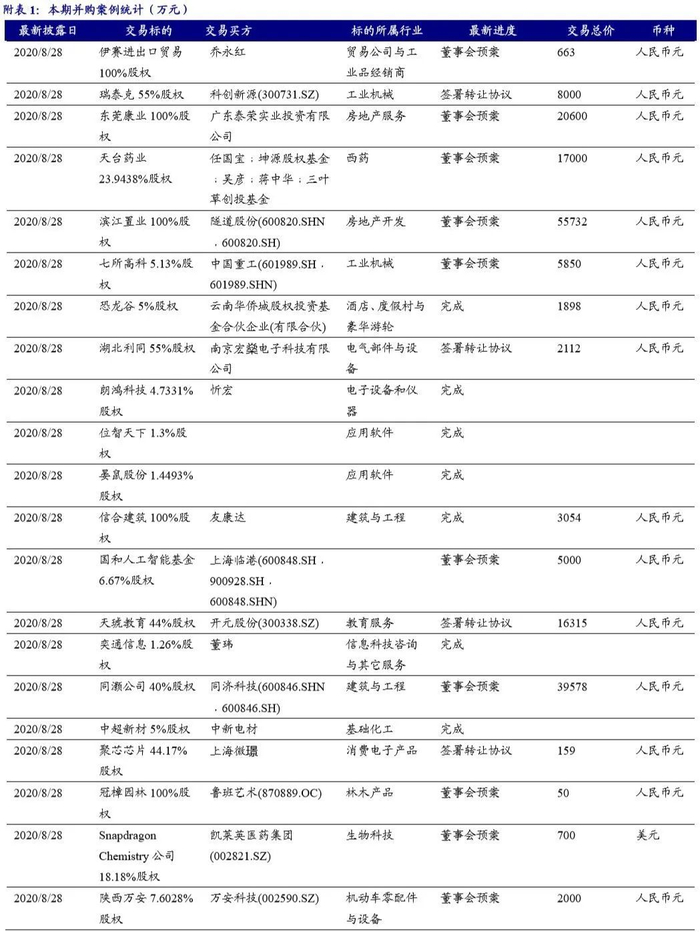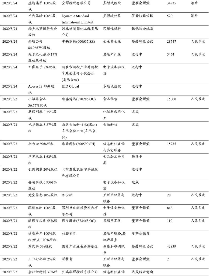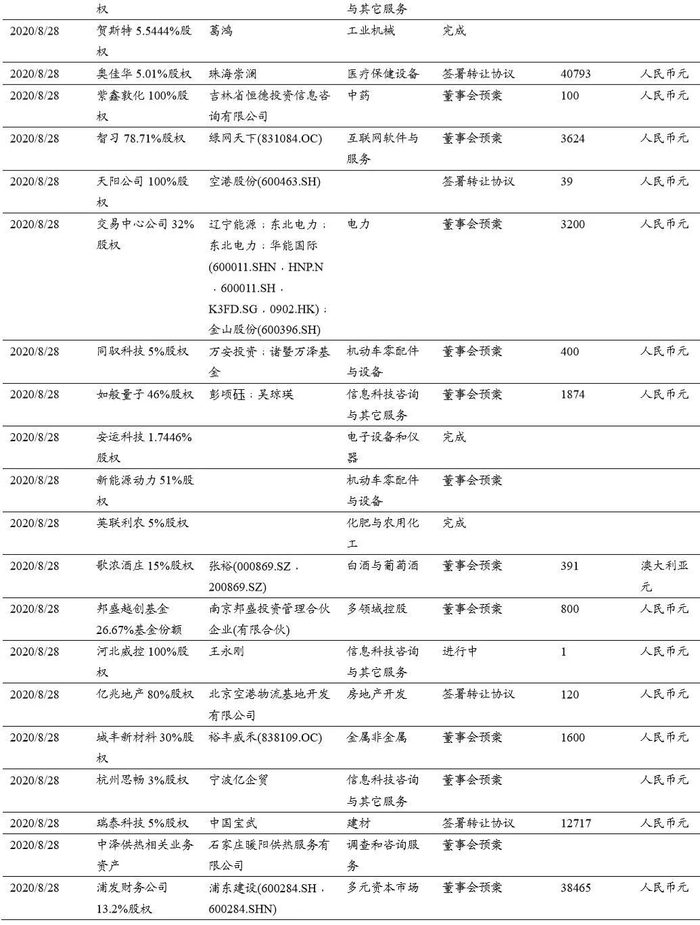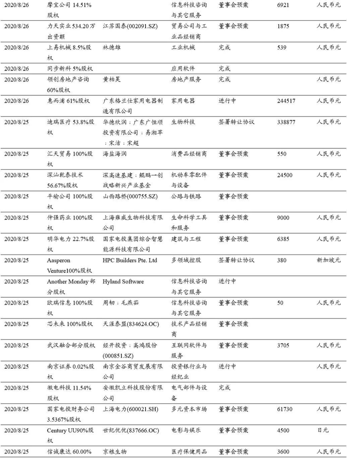 本期(2020.8.15-2020.8.29)重大定增并购案例: