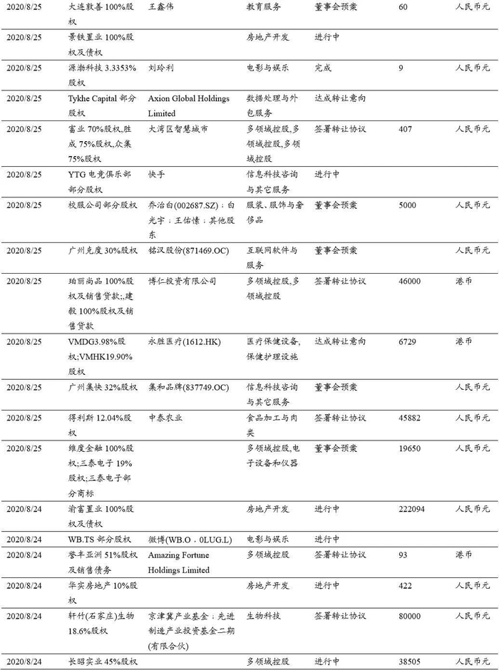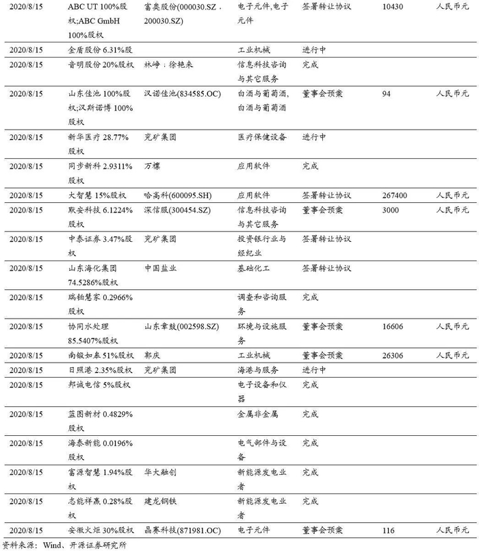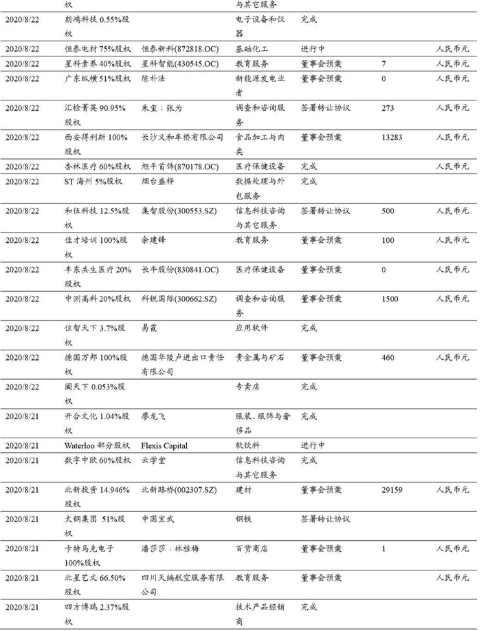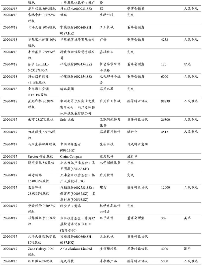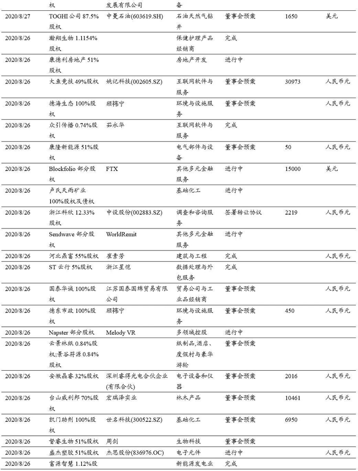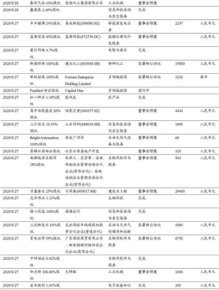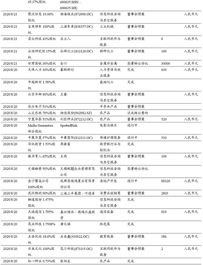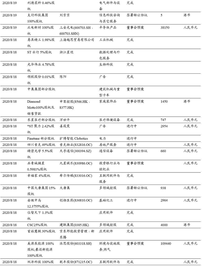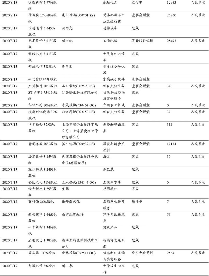 本期(2020.8.15-2020.8.29)重大定增并购案例: