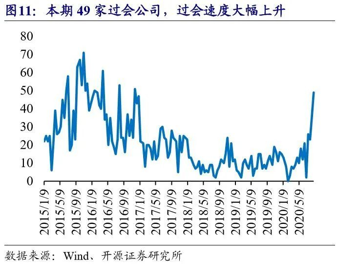 本期有27家公司发布了股权激励的预案,数量大幅回暖,并且股权激励方案的业绩要求显著提升。本期有欣锐科技、乐心医疗、道通科技、金证股份、生物股份、芯源微、司太立、汇纳科技和九洲药业9家公司股权激励的收入或业绩要求为符合增速不低于30%。股权激励的业绩要求代表了上市公司对于未来业绩增长的信心,建议从股权激励的角度多关注优质成长股。同时,本期定增新发预案数量和规模均再次大幅提升,同时过会速度再创新高,未来定增市场供大于求的格局将持续,定增投资“黄金年”继续。