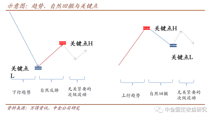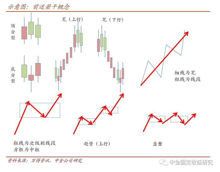 缠论对利弗莫尔体系的补充很有意义——尤其是关于“力度”和中间态的补充。当然,这也导致该体系的掌握难度要略大于经典理论。该体系建立在以下一系列概念之下(注:我们基于转债研究的实践有一定改动,并不严格遵循传统说法,主要出于易理解也便于计算机实现的目的):