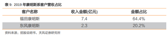 主要客户升级换代提高产能,公司下游需求有望持续增长。公司三大客户均会稳步提高产能,其中福田康明斯将在近两年进行其产品国六排放标准的升级,并在现有平台上开发更多客户和产品机型,预计未来几年产品销量会持续增长;东风康明斯已经与公司签署了新增产能的销售协议;东风商用车预计今年以后发动机销量逐步达到8-9万台,2022年以后达到11万台左右。2019年三大客户占公司营收比例高达93%,公司也是三大客户对应零部件的核心供应商,因此伴随三大客户销量提升,公司下游需求有望持续增长。