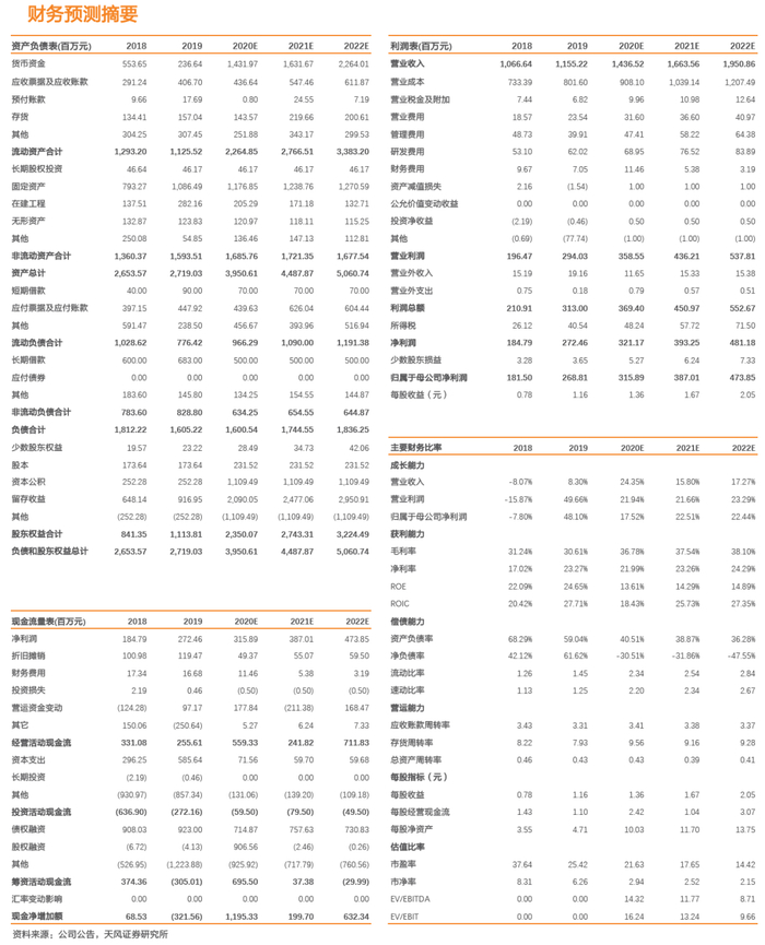 我们预计公司20-22年的归母净利润分别为3.2亿、3.9亿和4.7亿,对应PE分别为22倍、18倍和14倍。给予公司21年21倍目标PE,对应目标价35.07元,首次覆盖给予“买入”评级。