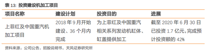 公司近年来与广西玉柴签署了销售协议,并投资建设上菲红和中国重汽机加工项目。