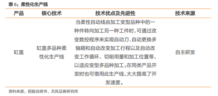 深耕技术体系开发,建立发动机零部件核心竞争力。公司经过多年技术创新和积累,形成拥有自主知识产权的柔性发动机零部件生产技术并积累了54项自主专利,同时已经将核心技术体系应用于规模化生产中。由于发动机零部件行业属于充分竞争行业,行业内企业较多,竞争较为激烈,拥有核心技术的企业将获得竞争优势,因此我们认为公司已经筑起了核心技术层面的护城河。