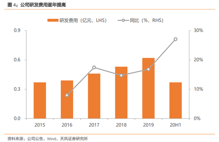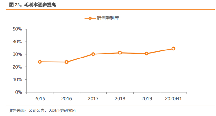 成本控制能力提升,毛利率逐步提高。公司20H1销售毛利率为34.5%,相比2019年提高4个百分点,主要得益于公司近年来成本控制能力的提升。随着公司经营水平的不断提高,毛利率有望持续提高。