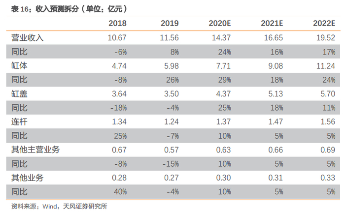 口碑积累,为拓展市场奠定基础。公司在发动机零部件领域建立的品牌知名度有助于公司拓展新的客户资源。公司近年来与广西玉柴签署了销售协议,并投资建设上菲红和中国重汽机加工项目,成功开发了广西玉柴、上菲红、中国重汽等新客户,有效拓展了公司的销售市场。我们认为新客户的开拓将成为公司未来几年销量增长的主要来源,并有望使公司销量增速保持在较高水平。